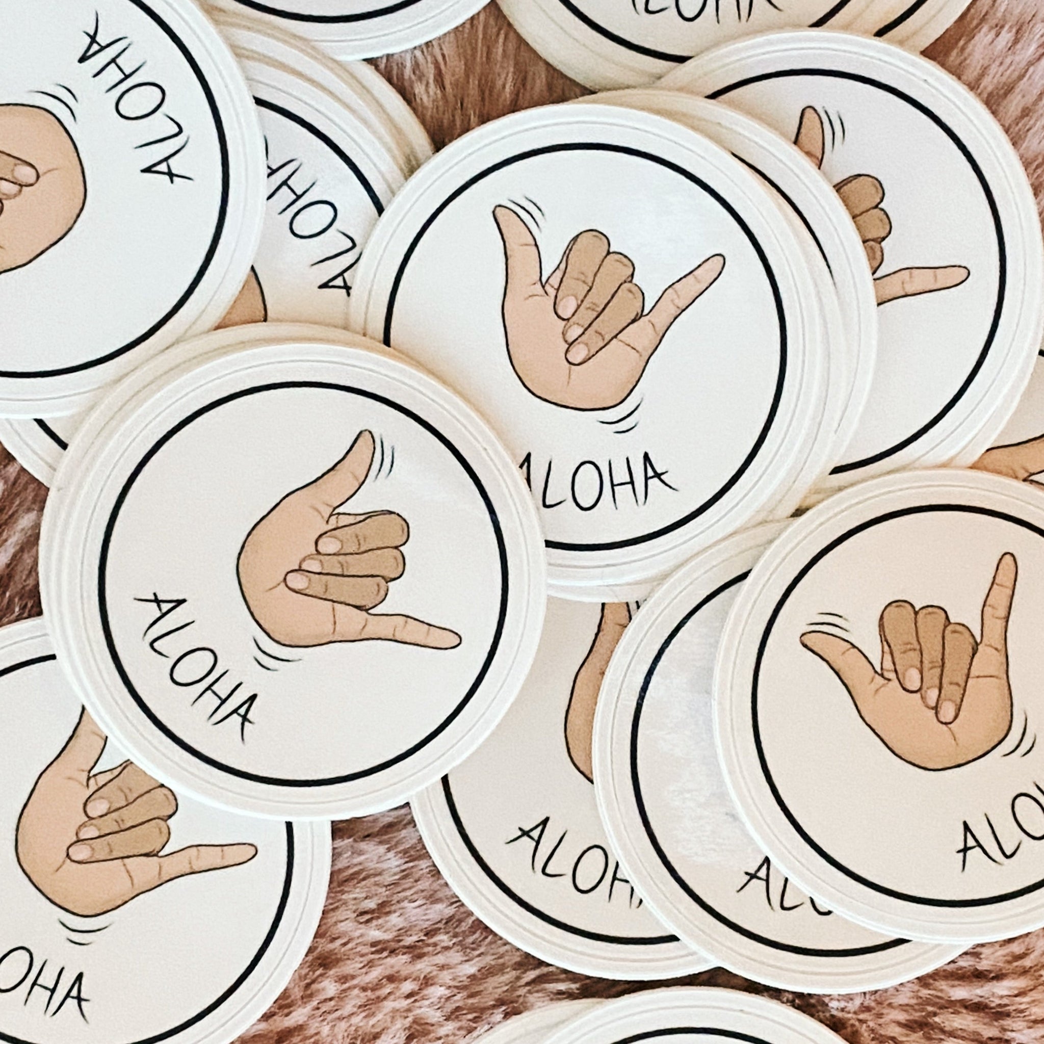 Add a hawaiian island vibe to your water bottle, laptop, phone, etc. with these cute little shakaloha stickers! Also good for use on paper as envelope sealers or decor.